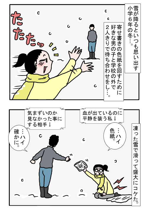 雪が積もると思い出す 2018年01月26日 雪が積もると思い出す 「幼少期〜高校」カテゴリの最新記事 < 前の記事次の記事 > コメント コメントフォーム 名前 コメント 記事の評価 リセット リセット 顔 星 情報を記憶 コメントを投稿する