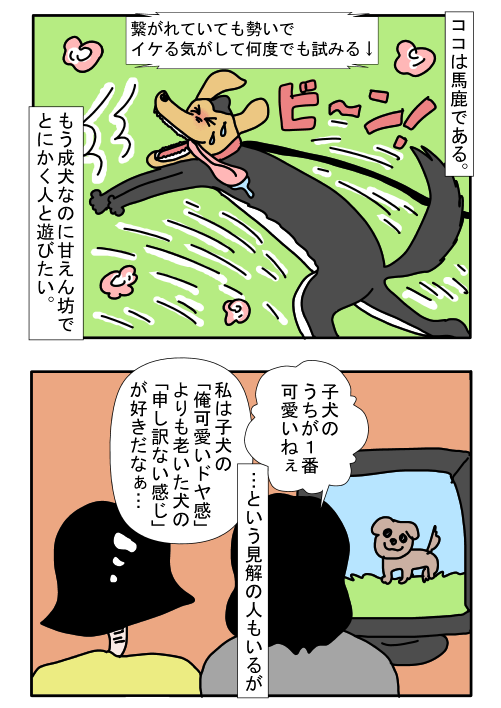 私も子犬は可愛くて当たり前で、成犬になった後の、何かやらかした顔とか、ドキドキしてる顔とか、そんなのに萌えます。