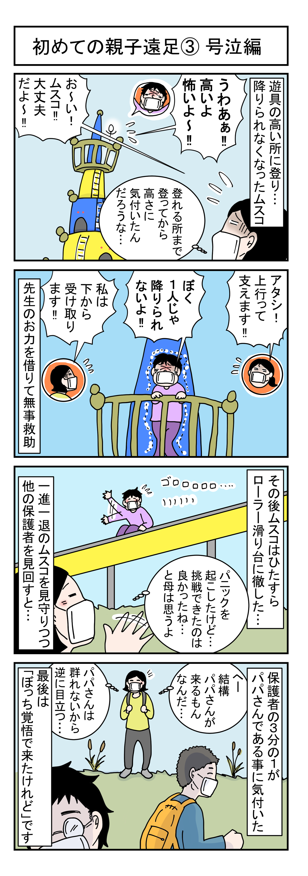拒否編 初めての親子遠足② 2021年10月23日 初めましての方もいつも見に来てくださる方もありがとうございます アラフォー夫婦&4歳ムスコの日常やインパクト大だった事を毎朝6時に更新しています 昨日は1回目 2回目投稿しました 本日は初めての親子遠足心配編の続き 拒否編 です ▼ 遊具の上で大号泣し ... 続きを読む