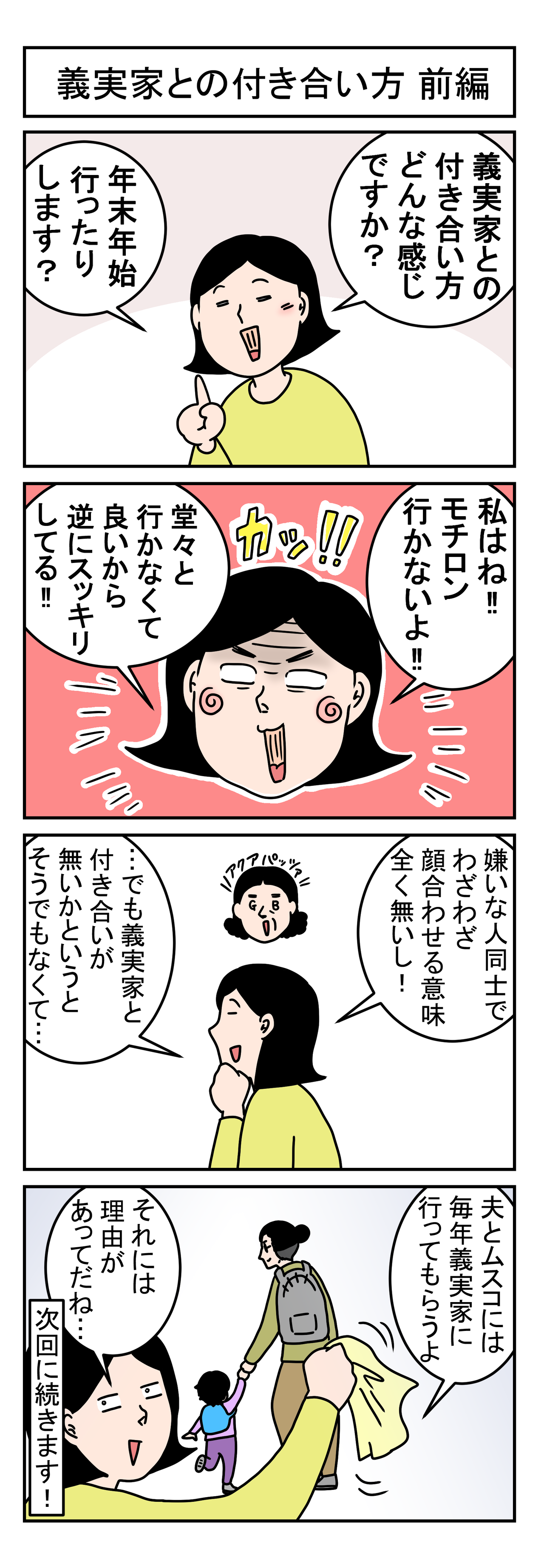 義実家との付き合い方 後編 2021年12月27日 初めましての方もいつも見に来てくださる方もありがとうございます アラフォー夫婦&4歳ムスコの日常など毎朝5時に更新しています 昨日は2回投稿ありました!1回目 義実家との付き合い方 前編2回目 ムスコからのクリスマスプレゼント 本日1回目の投稿義実家との ... 続きを読む
