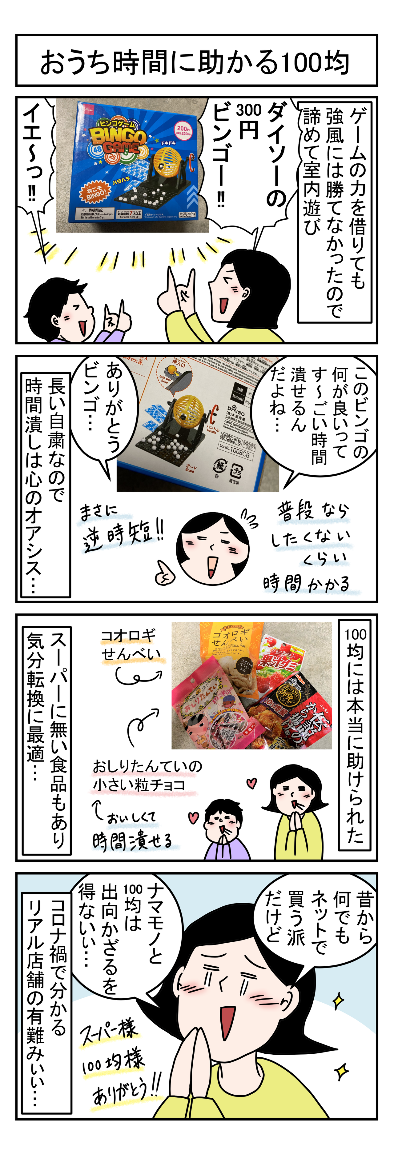 おうち時間に助かる100均 2022年02月05日 初めましての方もいつも見に来てくださる方もありがとうございます 5歳ムスコ&アラフォー夫婦の日常など毎朝5時に更新しています 初めましての方はコチラから 本日は登園自粛ルーティン外に出られない親子の続き おうち時間に助かる100均お話です 漫画の中のは全部ダイ ... 続きを読む